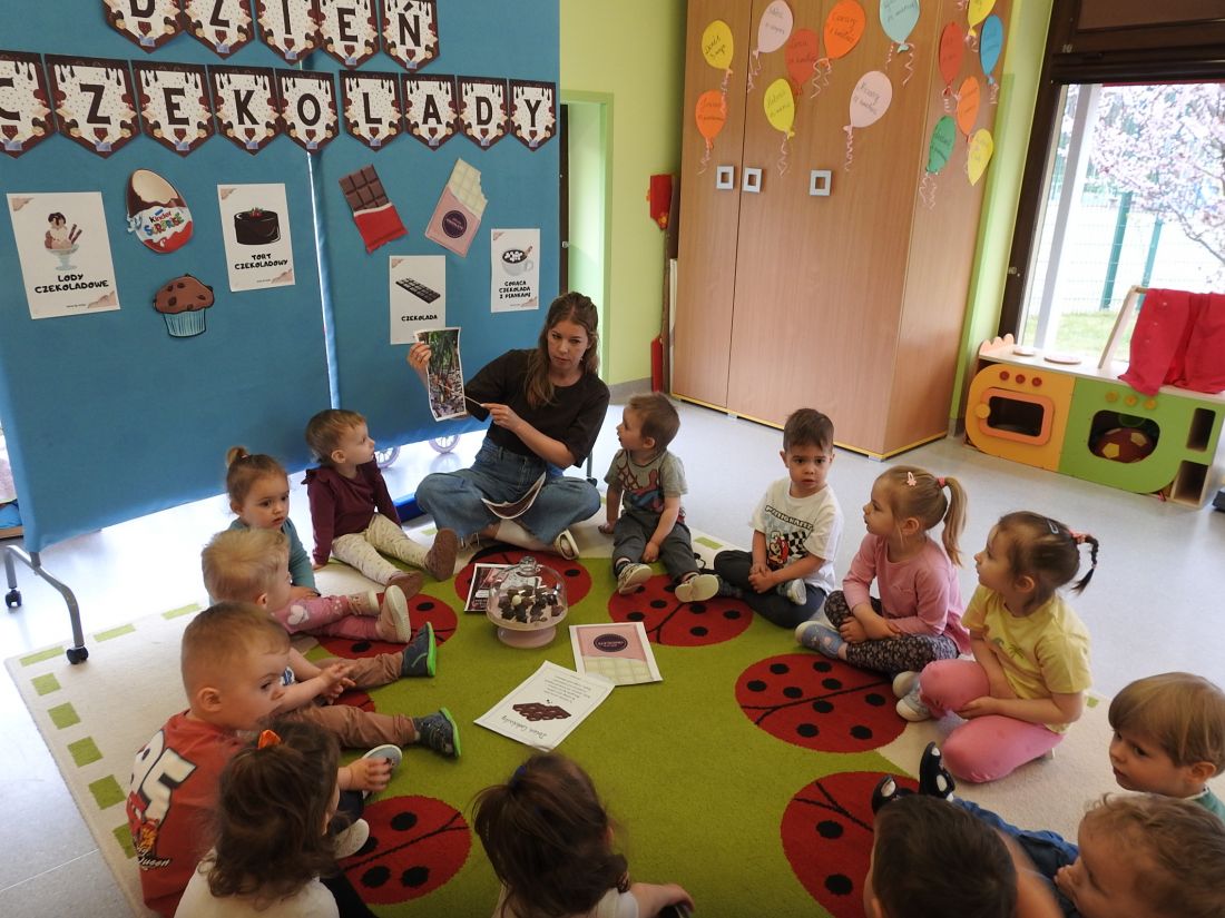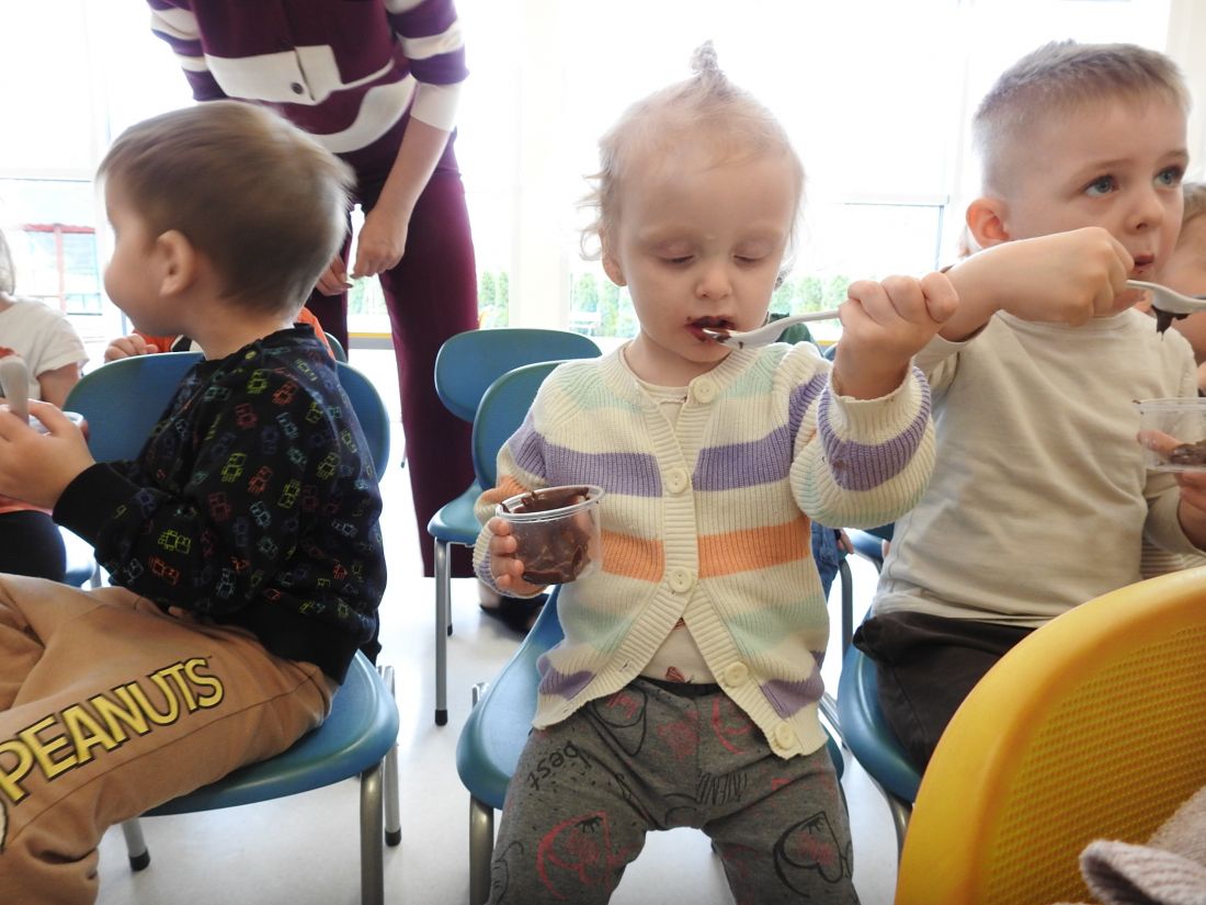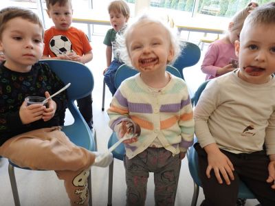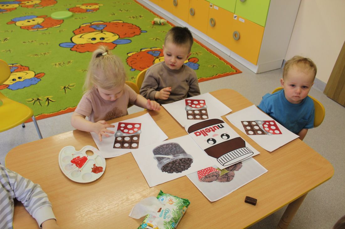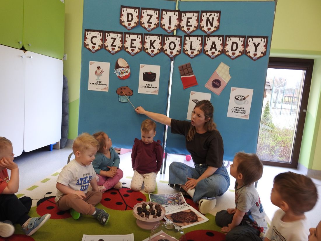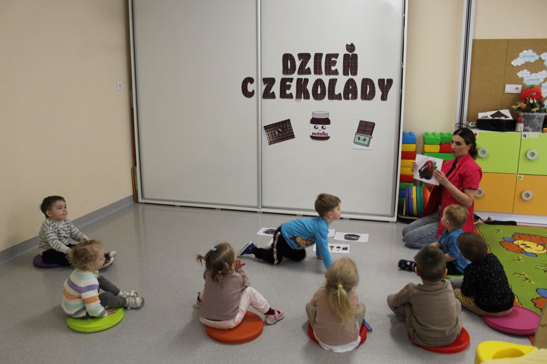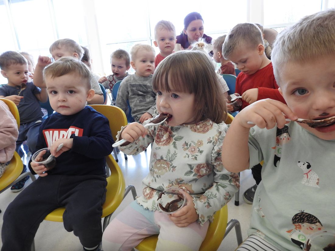 W naszym żłobku odbył się wyjątkowy i bardzo słodki Dzień Czekolady! Tego dnia dzieci miały okazję spróbować pysznych przysmaków, ale również dowiedzieć się, jak powstaje czekolada. Podczas specjalnie przygotowanego pokazu przez nasze Panie kucharki, maluchy zobaczyły jak powstaje ten przysmak. Największą radość sprawiła dzieciom część praktyczna- wspólna degustacja. Było dużo uśmiechu, radości i oczywiście wąsów! Dzień Czekolady był nie tylko pyszną przygodą , ale także okazją do nauki poprzez zabawę i rozwijanie ciekawości świata.