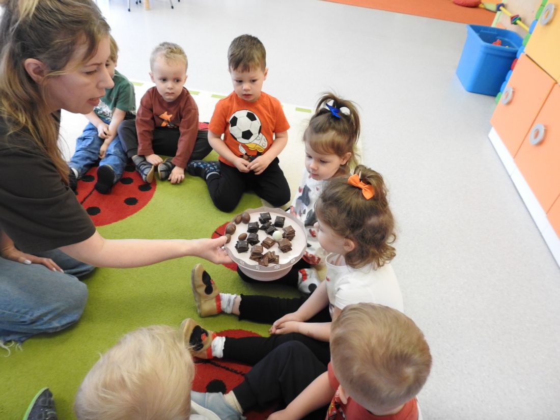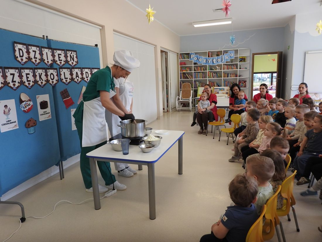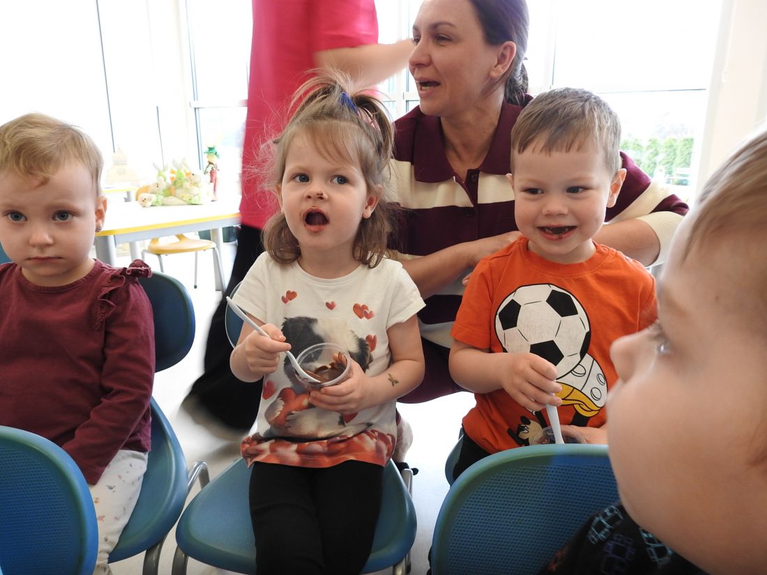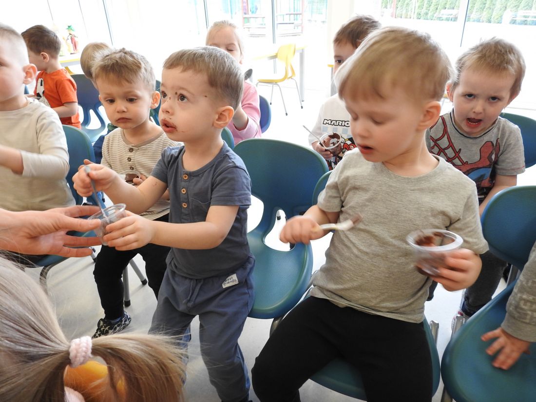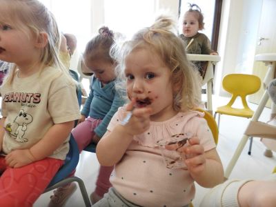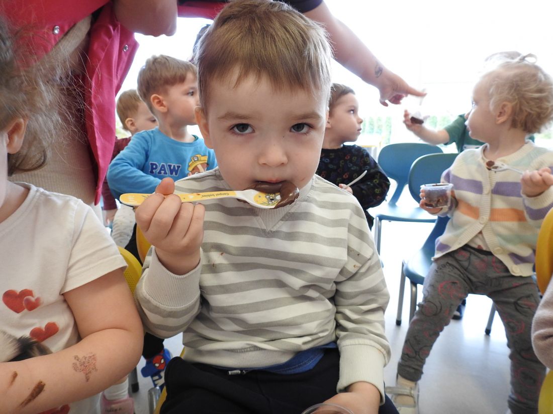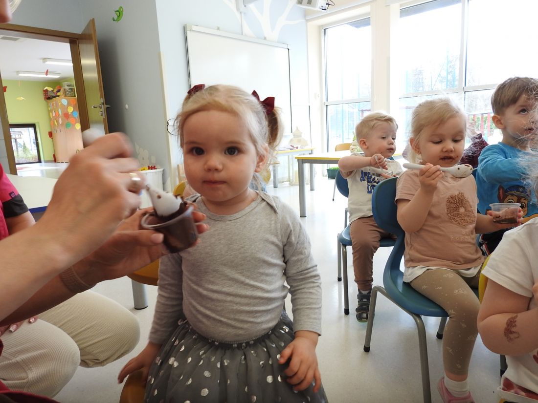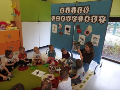 W naszym żłobku odbył się wyjątkowy i bardzo słodki Dzień Czekolady! Tego dnia dzieci miały okazję spróbować pysznych przysmaków, ale również dowiedzieć się, jak powstaje czekolada. Podczas specjalnie przygotowanego pokazu przez nasze Panie kucharki, maluchy zobaczyły jak powstaje ten przysmak. Największą radość sprawiła dzieciom część praktyczna- wspólna degustacja. Było dużo uśmiechu, radości i oczywiście wąsów! Dzień Czekolady był nie tylko pyszną przygodą , ale także okazją do nauki poprzez zabawę i rozwijanie ciekawości świata.