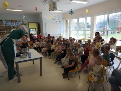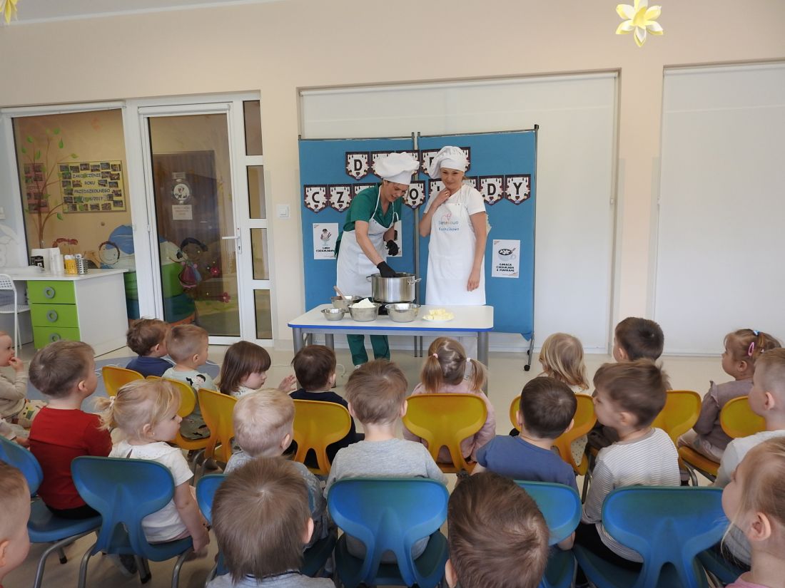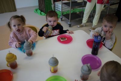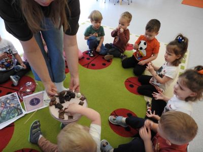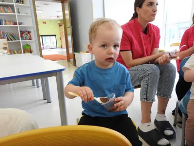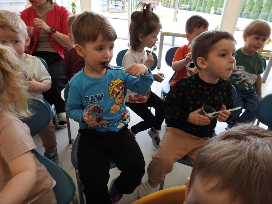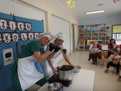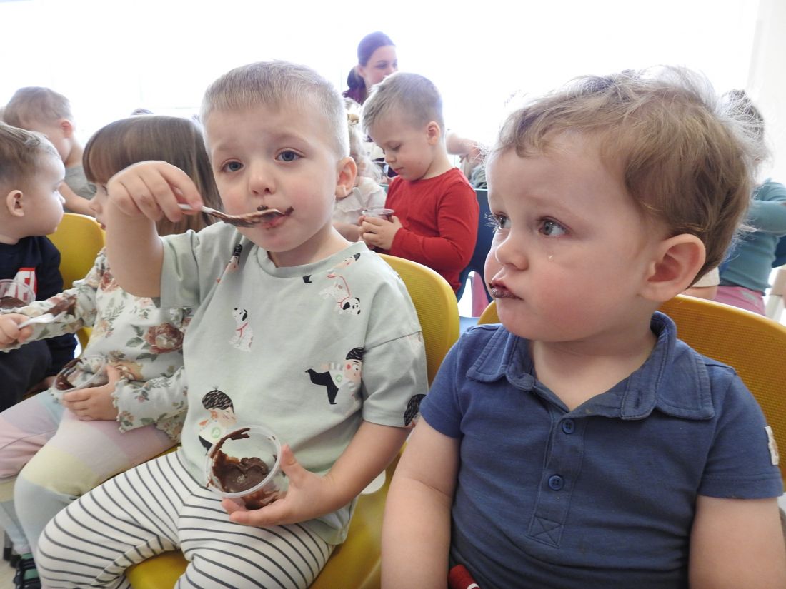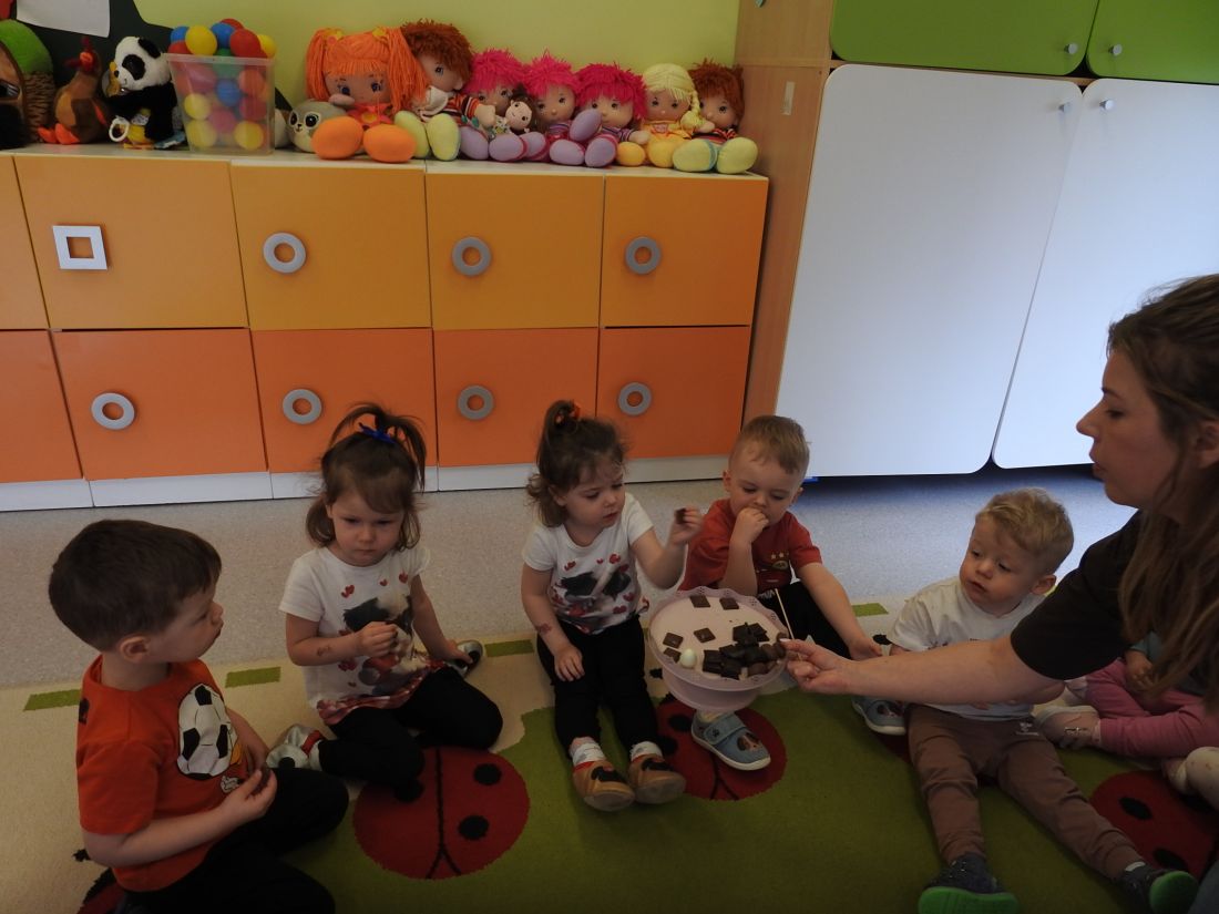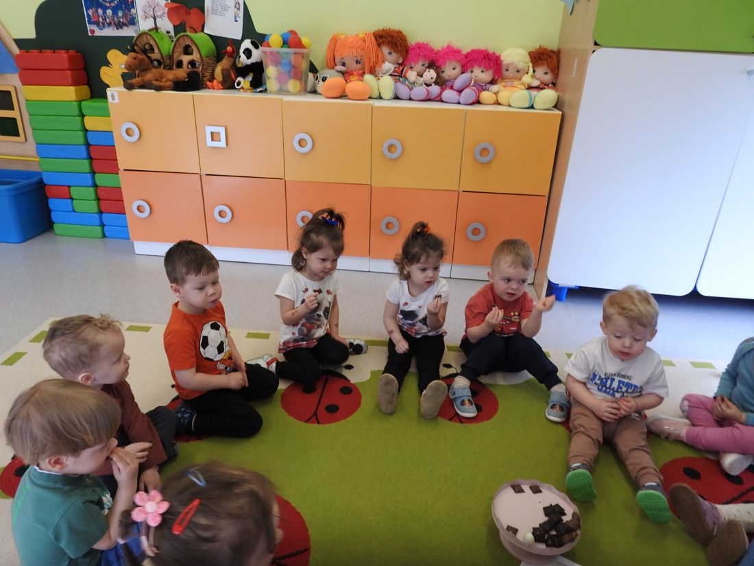 W naszym żłobku odbył się wyjątkowy i bardzo słodki Dzień Czekolady! Tego dnia dzieci miały okazję spróbować pysznych przysmaków, ale również dowiedzieć się, jak powstaje czekolada. Podczas specjalnie przygotowanego pokazu przez nasze Panie kucharki, maluchy zobaczyły jak powstaje ten przysmak. Największą radość sprawiła dzieciom część praktyczna- wspólna degustacja. Było dużo uśmiechu, radości i oczywiście wąsów! Dzień Czekolady był nie tylko pyszną przygodą , ale także okazją do nauki poprzez zabawę i rozwijanie ciekawości świata.