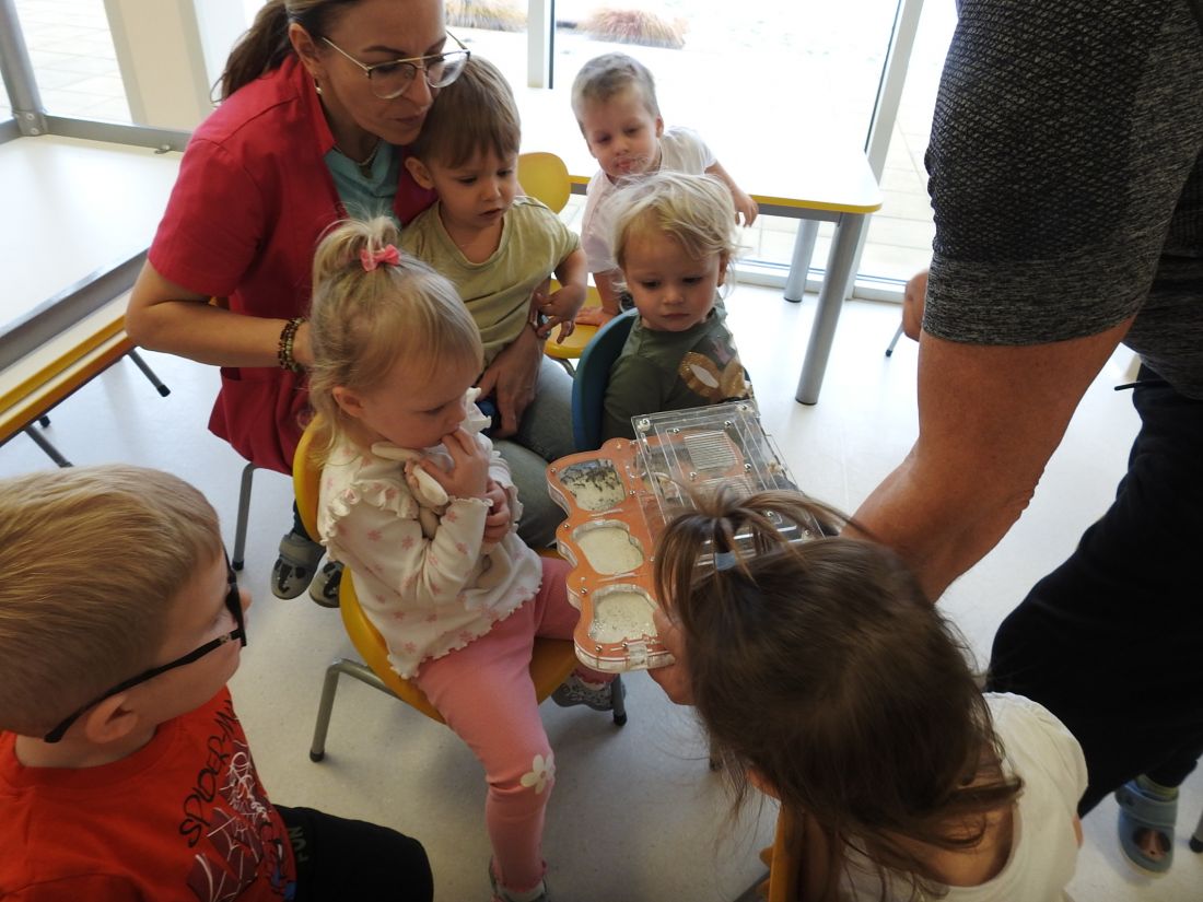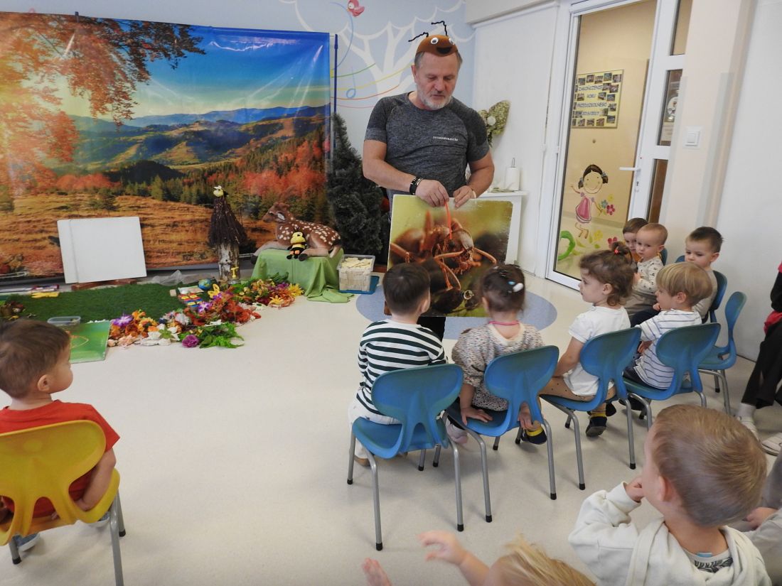 Dziś do naszego żłobka zawitał Mistrz pszczelarstwa Pan Aleksander Rębacz, który w interesujący sposób przybliżył nam życie tych małych stworzeń jakimi są mrówki. Miał ze sobą pojemnik z prawdziwymi owadami oraz różne materiały pokazujące, jak wygląda ich codzienne życie. Dzięki jego pasji dzieci mogły zobaczyć świat mrówek z zupełnie nowej perspektywy.