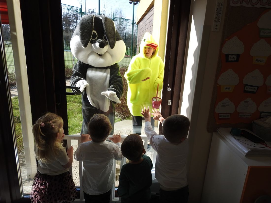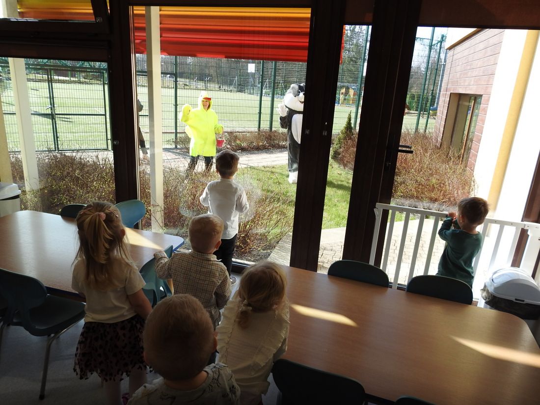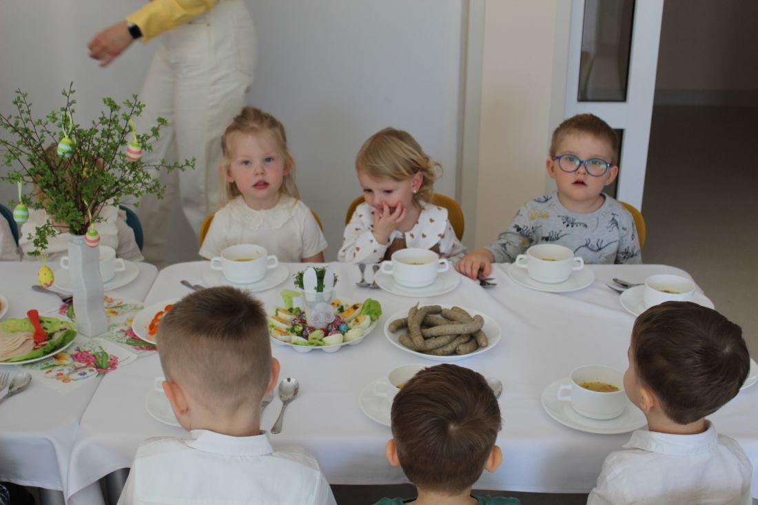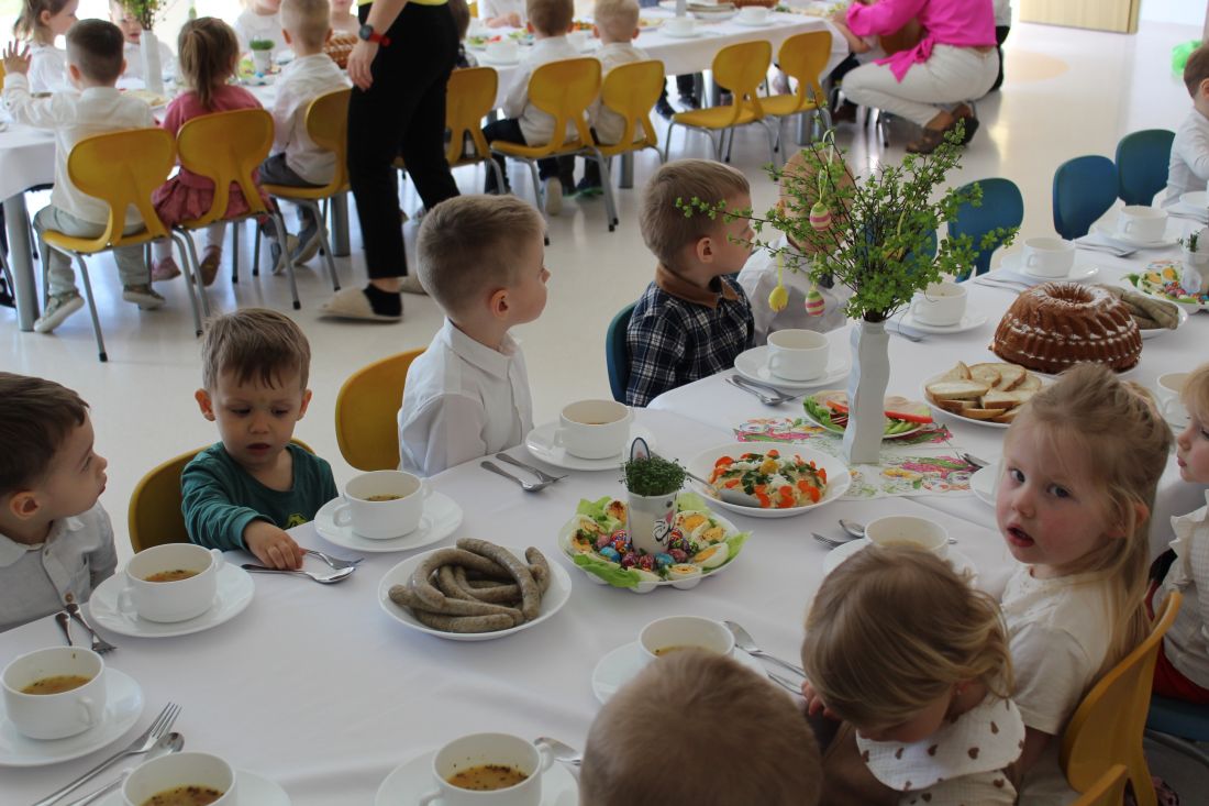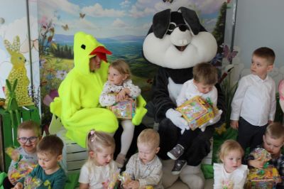W naszym żłobku odbyło się wyjątkowe Śniadanko Wielkanocne. Wszystkie grupy spotkały się wspólnie na jadalni, by razem celebrować radosny czas przy świątecznym stole. Największą niespodzianką była wizyta niezwykłego gościa- odwiedził nas Zając Wielkanocny, który sprawił dzieciom ogromną radość i obdarował je upominkami. Uśmiechów i świątecznej atmosfery nie brakowało! Z okazji Świąt Wielkanocnych życzymy wszystkim dużo zdrowia, radości, spokoju, wiosennej nadziei oraz pięknych chwil spędzonych w gronie najbliższych.
